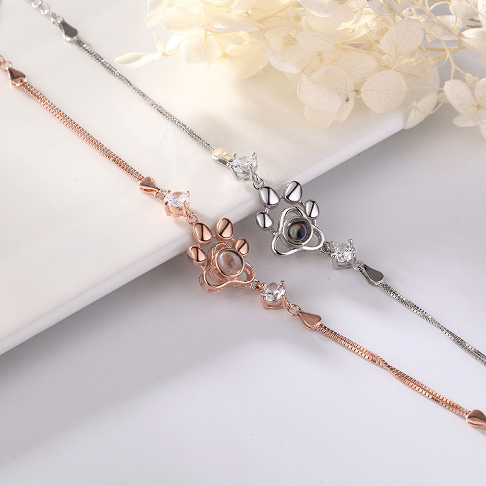 Sterling Silver Dog Paw Projection Bracelet Photo Projection Bracelet Pet Souvenir
