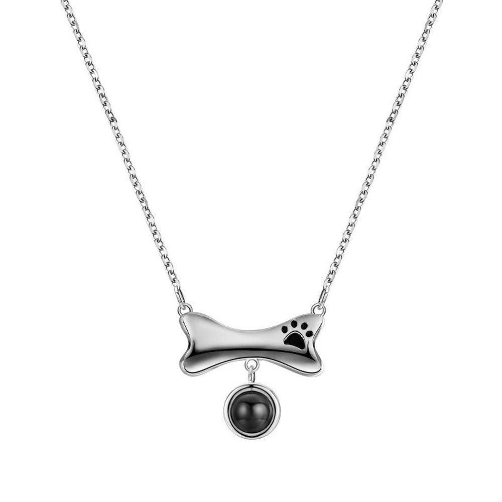 Dog Paw Bone Pet Photo Projection Necklace Sterling Silver Gift for Pet Lovers